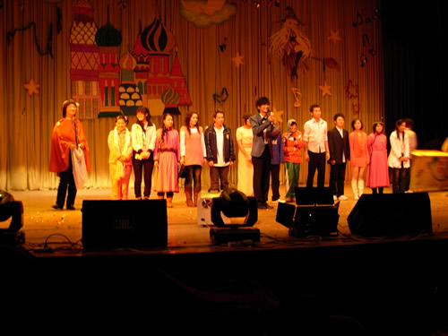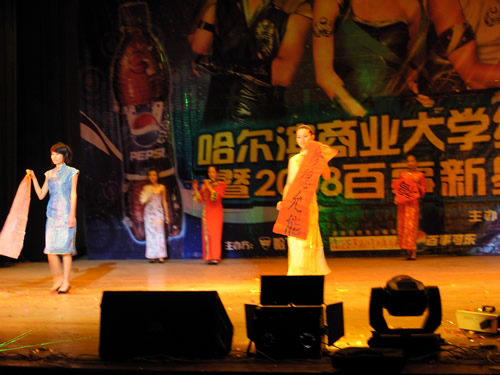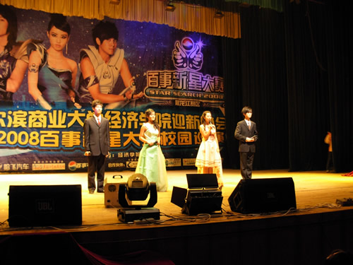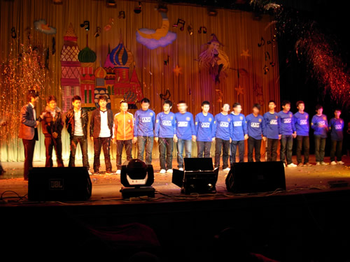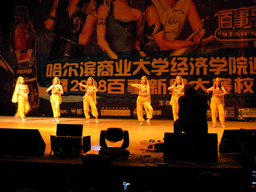 五光十色的灯光下,晚会在四位主持人激情饱满的开幕词中拉开帷幕。一段热力四射的开场舞,带动了全场的气氛。接下来,热情挥洒的拉丁,幽默风趣的相声,风情各异的印度舞、朝鲜舞、芭蕾舞,美妙动听的歌曲联唱,乐器演奏,推陈出新的打击乐表演,动感十足的街舞,现实中演绎的唯美漫画---COSPLAY……好歌不断,热舞不停,精彩的节目使同学们目不暇接,精湛的表演博得了阵阵掌声。大四的同学在百忙之中带给同学们一首婉转动听的《牧羊曲》,寄予了对新生的关爱和希望;诙谐幽默的话剧表演,把全场的气氛推向了高潮。最后,晚会在《千山万水》的优美旋律中成功的落下了帷幕。