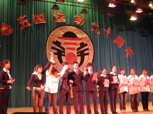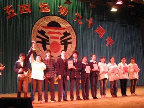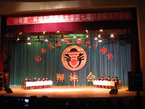 2009年4月27日晚5时15分,由校团委学生会组织的哈尔滨商业大学第七届“新希望”杯校园精英辩论赛半决赛、决赛在东区大礼堂鸣锣开战。我院在王英同学的带领下,张潇泽、毕宇琦、梁彤、杨娜、郑莹、姜明林、韩婧、余万秀团结协作,在半决赛中以92.2分比88.5分战胜对手体育学院,晋级决赛。并在决赛中以91.6分险胜得分90.2分的财政与公共管理学院,勇摘桂冠。