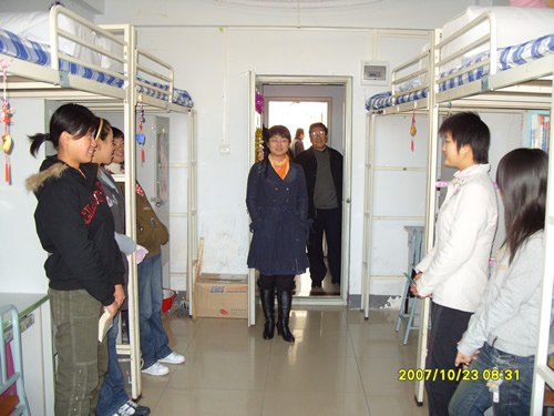 在参观走访过程中,各位领导与学生亲切交谈,询问学生的学习和生活状况,并为同学们答疑解惑。学生工作督导老师在参观中对经济学院的学生工作,尤其是宿舍工作给予了很高的评价。督导武振田老师对本次寝室风采大赛予以充分肯定:“如果按照星级寝室评比标准来看,这些寝室都可以评得上!”督导刘惠敏老师提出,学生公寓管理工作从职能上可以划分为两个方面,一是物业服务,二是学生管理,学生公寓应按照付伟主任提出的“三个需要”开展工作,为学生创造安全、有序的生活空间,为学生的学习生活提供方便,为学生的成长提供服务。