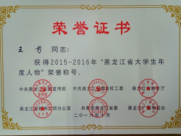 日前,由省委宣传部、省委高校工委、省教育厅、省文明办、团省委、黑龙江广播电视台联合举办的2015—2016年度黑龙江省高校教师年度人物、大学生年度人物暨道德模范人物(群体)评选活动刚刚落下帷幕,我校金融学院王芍同学荣获本年度“黑龙江省大学生年度人物”称号。