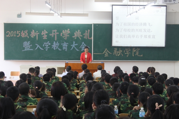 大会伊始,2015级全体新生在学生会主席韩佩秀的带领下进行庄严宣誓。