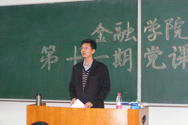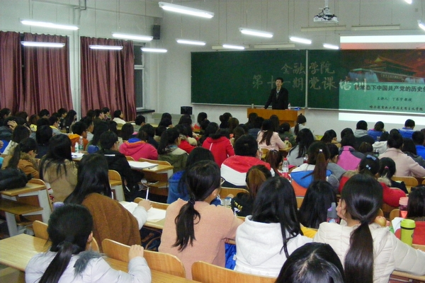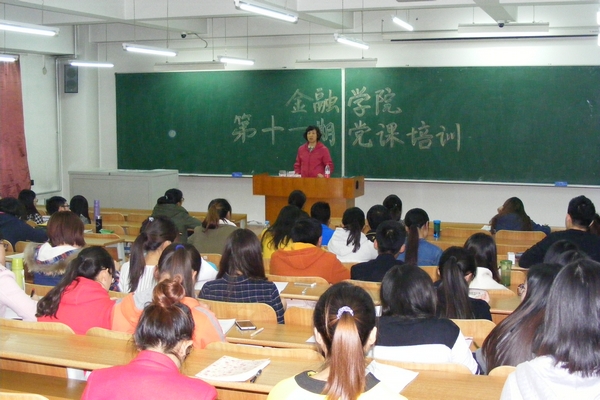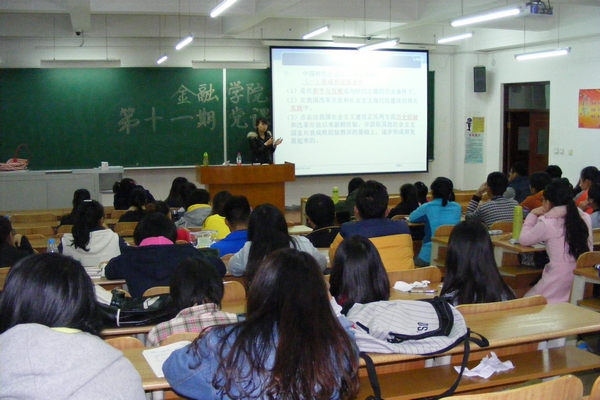 马克思主义学院丁东宇教授、金卓老师、金融学院党总支钱雨春书记和会计学院副书记刘天老师为学生授课。按照校党委组织部的工作要求,几位老师分别就“党的基本理论、路线、纲领”、“走中国特色社会主义道路的正确性”、“形势任务教育”、“党’实现中国梦’的奋斗目标”、“端正入党动机,争取早日入党”、“坚定共产主义社会主义理想信念”、“坚定对共产党的信任”、“发展党员的程序和手续”等内容向同学们进行了系统讲解。