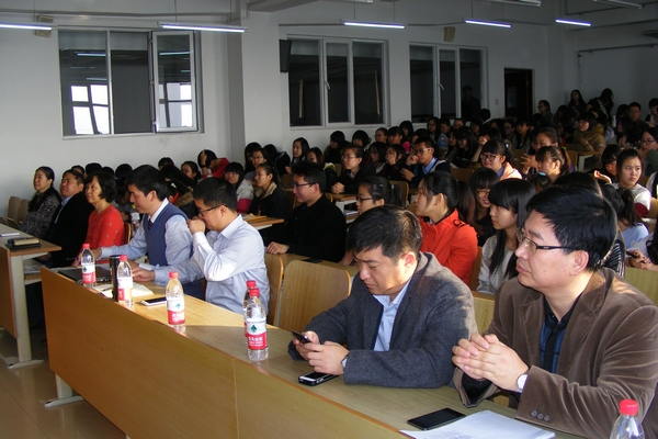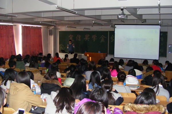 颁奖仪式结束后,校友马斌斌还为同学们作了题为“互联网金融创新”的专题讲座。介绍了p2p行业的发展状况、业务模式、用人理念,以及宜信农贷目前在全国的发展及未来的发展布局,使同学们对当前互联网金融有了进一步了解。