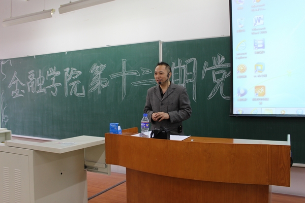 本次党课培训由金融学院党总支书记钱雨春、院团委书记石亚平、投资学教研室主任庞海峰、任课教师韩阳为学生上课。几位授课教师分别围绕校党委组织部要求的党课内容,就“党的基本理论、路线、纲领”、“形势任务教育”、“坚定对共产党的信任”、“ 端正入党动机,争取早日入党”、“ 走中国特色社会主义道路的正确性”、“ 党“实现中国梦”的奋斗目标”、“ 坚定共产主义社会主义理想信念”等内容向同学们进行了系统阐述。