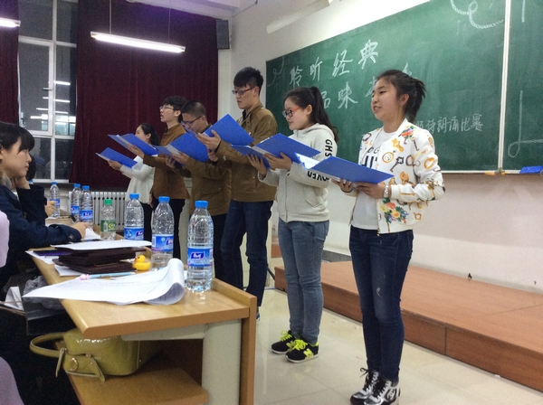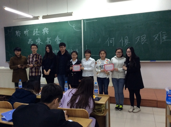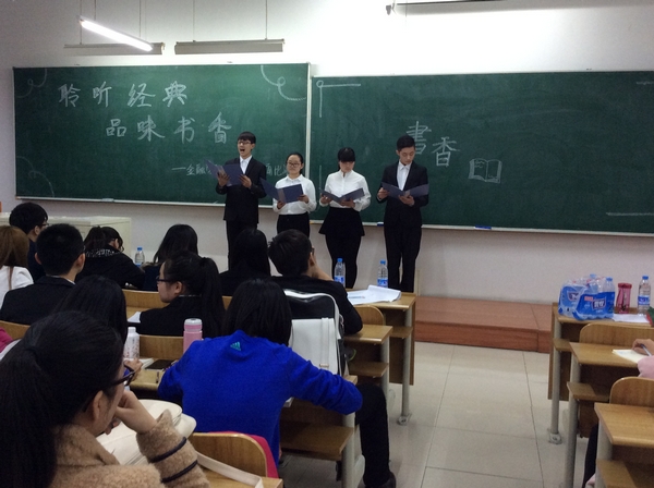 目前,由哈尔滨商业大学经典阅读指导委员主办的“聆听经典,品味书香”名家名作朗诵会活动正在我校如火如荼的开展,为了相应校团委号召,提升大学生的文化品位,丰富校园文化,金融学院团委于4月1日下午18:00,在A区3301教室举行了名家名作朗诵比赛。