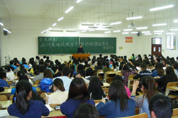 在校党委的正确领导下,金融学院党总支围绕中心工作,坚持立德树人的根本任务,围绕学习贯彻习近平总书记系列重要讲话精神这一主题,努力丰富校园文化,开展系列特色活动,创设育人平台,推动社会主义核心价值观进课堂、进教材、进头脑。作为系列活动之一,“亚洲基础设施投资银行的深远意义”学术讲座于5月21日晚17:30在4206教室隆重举行,讲座现场座无虚席,气氛热烈。