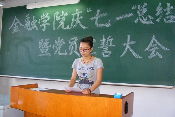 “七·一”来临之际,金融学院于6月29日16:30在A区主楼0724教室召开了纪念建党94周年暨“七·一”党员表彰大会。金融学院党总支书记钱雨春、副书记王春华、团委书记石亚平、董兵权、何开文老师出席了会议,学院全体学生党员、预备党员参加了会议。大会由石亚平老师主持。