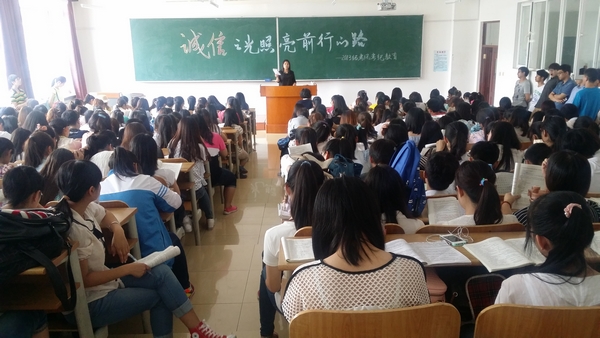 在会上钱书记发表讲话,指出会议旨在强调严肃考风考纪的重要性,警示同学们客观对待考试,认真备考,文明考试,争做诚信学生, 希望同学们在短暂的时间内能突破自己,顺利通过考试,要求各年级学生干部、党员和积极分子要发挥带头作用,带领班级同学认真复习,杜绝考试作弊行为。