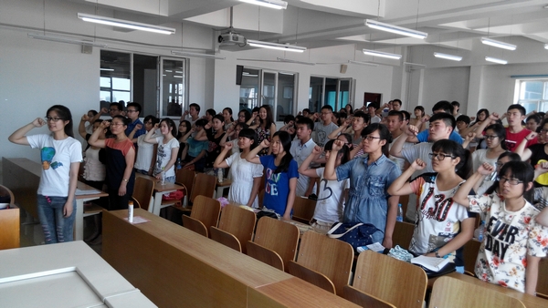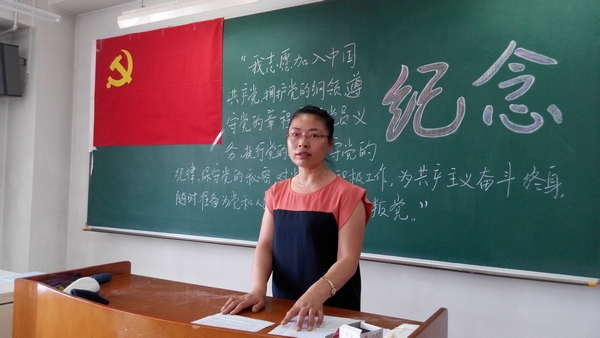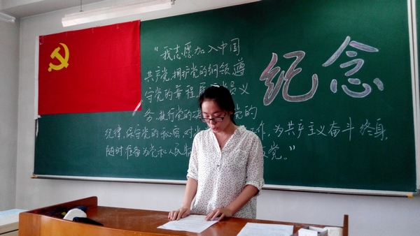 会议首先对学院党总支评选出的10名学生党员进行了表彰,接着全体学生党员、预备党员在程雪婷同学的带领下进行了宣誓。全体党员庄严地面对党旗,举起右拳,新党员郑重宣誓,老党员再一次重温了入党誓词,现场气氛庄严肃穆,入党誓词铿锵有力。宣誓活动使全体党员接受了党的教育,增强了党性观念。随后,优秀学生党员代表庞雅莉同学进行了发言,表达了作为一名学生党员对党的热爱与深情,表示一定会牢记党的宗旨,努力践行入党誓言,向老一辈革命家学习,刻苦钻研,争创佳绩。
