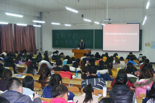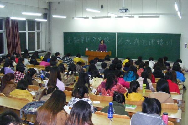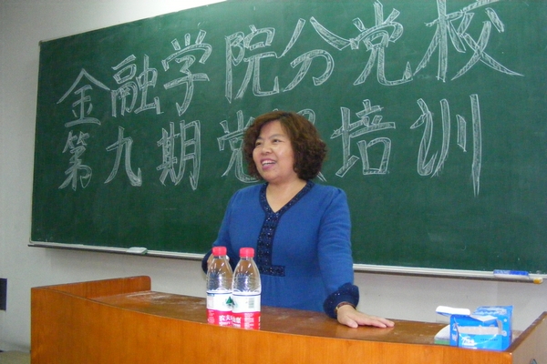马克思主义学院裴桂清教授及丁东宇副教授、金融学院党总支钱雨春书记、王春华副书记为学生授课。几位老师分别就“时代、责任、使命——十八大三中全会精神解读”、“中国梦的内涵与青年学生党员的未来使命”、“中国共产党的最高理想和奋斗目标”、“中国共产党的光辉历程”、“如何做一名合格的学生党员”、“大学生入党程序和党的基本知识”、“学习新党章,共筑中国梦”等内容向同学们进行了系统阐述。