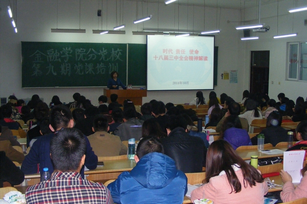 11月3日至10日,金融学院分党校第九期党课培训如期举行,学生入党积极分子和拟发展对象党课培训班分别开班授课,128名入党积极分子和33名拟发展对象接受了党课培训,圆满地完成了培训任务。
