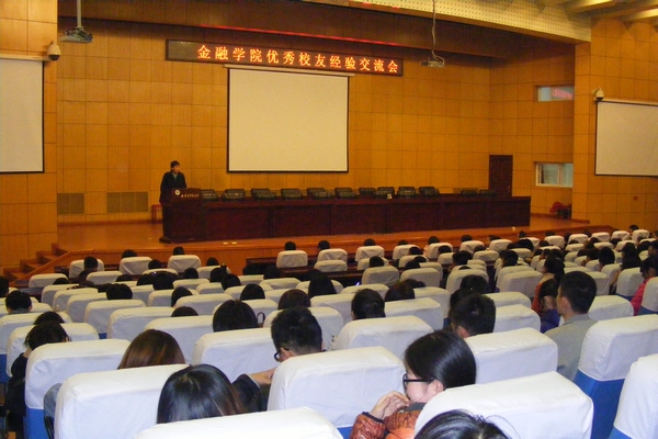 11月11日17:30,金融学院在专家公寓一楼会议厅举办了一场优秀校友经验交流会,学院特邀了2007届优秀毕业生,现任宜信惠民投资管理(北京)有限公司高级经理的马斌斌作为主讲嘉宾,为学生作报告。学院党总支书记钱雨春、院团委书记石亚平、11级辅导员董兵权老师及2013级、2014级300余名同学参加了交流会。