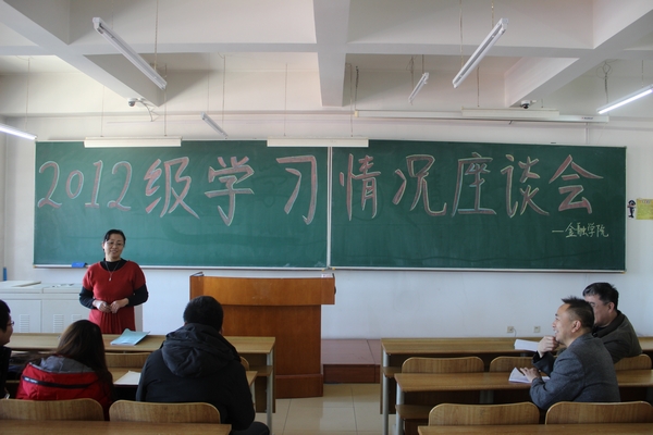 11月13日12:30,2012级学习情况座谈会在0724教室召开,11月10日12:30,2013级学习情况座谈会在0721教室举行。出席座谈会的有副院长温红梅教授、投资学教研室主任庞海峰教授、金融学教研室主任刘降斌教授、金融工程教研室主任刘磊教授、韩阳副教授。其中庞海峰和韩阳两位老师也是以兼职辅导员的身份参加座谈。