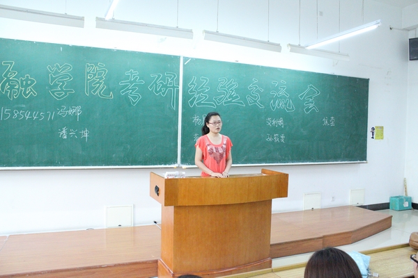 交流会上,我们请到了2009级顺利考取硕士研究生的9名学长为同学们讲授成功经验。他们分别是刘欢、黄竹、冯娜、潘兴坤、杨晨微、蒋哲正、艾丽娟、孙筱雯和焦莹。优秀的学长学姐们对备考同学关注的问题进行了答疑并分享了学习经验。黄竹学姐提出注重专业课,不能偏科,端正态度;冯娜学姐提出注意备考期间的情绪稳定,调整好自己,全力以赴;潘兴坤学长则提出要注意权衡考研和工作的关系。