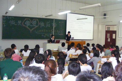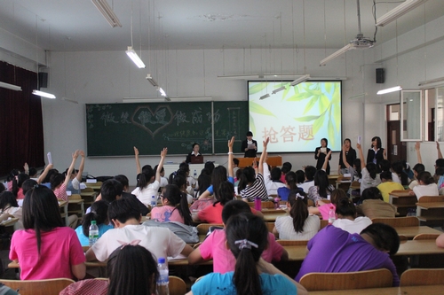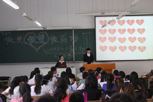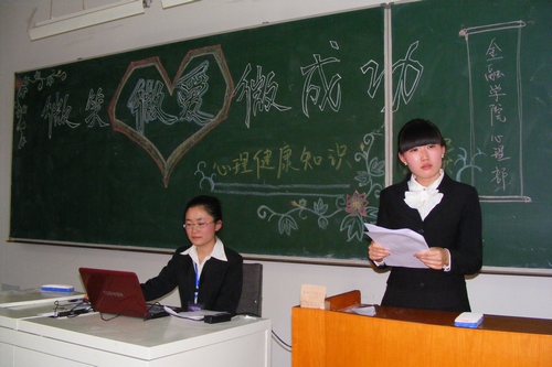 为迎接“5·25”全国大学生心理健康日,积极普及心理健康知识,金融学院于5月21日在新区3203教室举行了一场心理健康知识竞赛。金融学院2011级辅导员董兵权老师、学生会各部部长出席并担任本次比赛的评委,2010级和2011级150余名学生代表参加了活动。