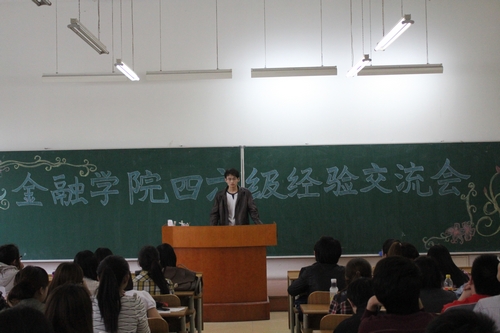 掌握英语已成为未来人才必备的一项基本素质,而作为衡量大学生英语水平的标准化考试——英语四、六级考试也受到越来越多的关注。在距离本年度六月份英语四、六级考试只有21天的关键时刻,为丰富同学们的考试经验,提高同学们英语学习水平和应用能力,金融学院学生会于5月25日晚在四号教学楼4101教室举办了英语四、六级学习经验交流会。