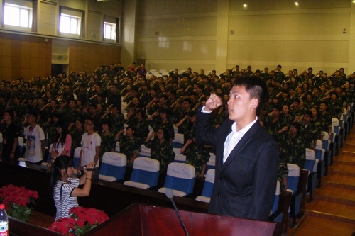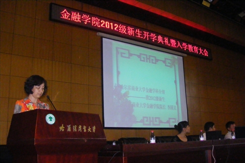 2012年8月27日下午在我校国际学术报告厅,金融学院举行了2012级新生开学典礼,之后进行了新生入学教育。中共金融学院党总支书记钱雨春同志主持典礼和教育大会。老虎团李少丹教官作了铿锵有力的发言;教师代表刘任重博士代表金融学院全体教师表达了对新生的殷切期望;2012级金融学1班李笑菡同学代表全体新生发表了入学感言和立志成才的决心;全体新生庄严宣誓,表示要刻苦学习,成为祖国建设所需要的合格人才。
