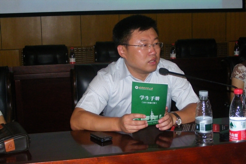 会上,金融学院院长李国义教授作了学科教育报告,向新生讲解了我校金融学科的发展历史、教育层次、办学条件、师资力量、就业前景、学习方法、四年后应达到的能力与素质等。教学副院长姚凤阁教授以学生手册为依据,向新生作了学习动员报告,讲解了学校的学籍规定和教学纪律。科研副院长陈敏教授作了创新创业教育报告,鼓励新生积极参与大学生创新创业项目训练和科研活动,有继续深造意愿者努力提高考研的效果。中共金融学院党总支副书记王春华同志对新生进行了思想政治教育,鼓励新生树立正确的人生观和价值观,全面提高自身的政治思想素质,将来为祖国社会主义建设做出较大贡献。金融学院团委书记石亚平同志对新生进行了安全教育,要求新生注意人身安全、财产安全、学习安全和政治安全,并对新生作了军训动员。
