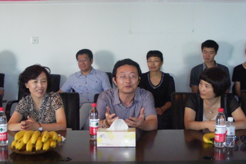 副校长于树彬教授(左)、副校长张晓丹教授(右)出席座谈会并先后发表热情讲话