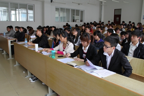 来自09、10级的15名学生参加了本次比赛,这些同学都是在各班级先期举行的演讲比赛中脱颖而出的优胜者,他们将在这里同台竞技,一决高下。金融学院党总支副书记王春华、院团委书记石亚平、辅导员董兵权老师与各年级学生代表一同担任了本次演讲比赛的评委。