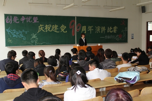为纪念中国共产党成立90周年,重温党的光辉历程,歌颂伟大成就,丰富我校正在开展的以“回顾党史、继承传统、展望未来”为主题的系列教育活动,进一步推进创先争优活动,按照校党委有关文件精神,金融学院于5月5日下午1:30在新区主楼4302教室举行了“创先争优暨庆祝建党90周年”演讲比赛。