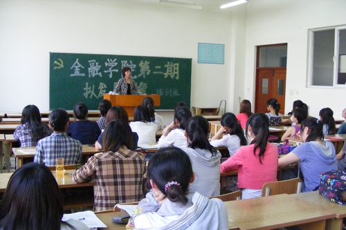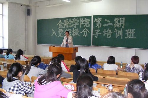 5月24日17:30,金融学院分党校在主楼0110教室举行了第二期党课培训班开学仪式。在党课培训过程中,除辅导员董兵权老师外,还邀请了我校马克思主义学院徐业滨教授、裴桂清教授及丁东宇副教授为学生授课,分别就中国共产党的最高理想和奋斗目标、科学发展观的内涵、十二五规划远景目标及中国共产党的光辉历程向同学们进行了系统阐述。除了党课的理论学习,金融学院分党校还组织了党课培训班的同学进行了学习讨论,同学们围绕建党90周年、创先争优、爱国主义等主题,从不同角度纷纷表达了自己内心的感悟,并认真撰写了学习心得和党课结业总结。