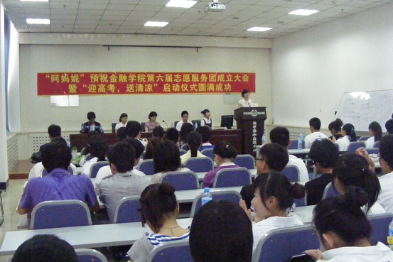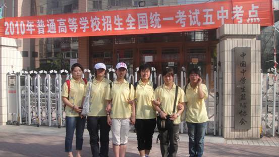 金融学院第六届志愿服务团在2010年6月7日、8日高考两天,前往哈市四个高考考点进行“迎高考,送清凉”志愿服务活动。