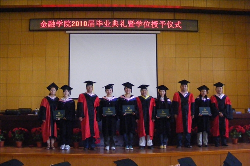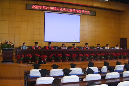6月25日上午8:30,金融学院2010届毕业典礼大会暨学位授予仪式在我校新区专家公寓一楼国际会议厅隆重举行。