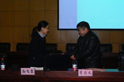 讲座开始前,李国义院长向孙飞霞主任、王海滨总经理颁发了硕士导师聘书,正式聘请孙主任和王海滨总经理为我校金融学专业硕士研究生导师。