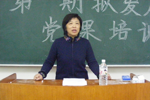 07级金融学4班陈姝同学代表全体参加本次培训的入党积极分子和拟发展对象发言。表示作为一名思想积极要求进步的学生,一定要以此次培训为契机,努力学习党的历史知识,打下坚实的理论基础,树立远大理想,发扬党的优良传统,以实际行动争取早日入党。