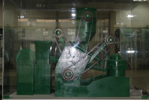 校史馆陈列的我校研制的饺子机模型