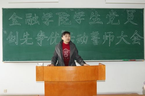 为了认真贯彻落实校党委《关于在全校基层党组织和党员中深入开展创先争优活动的实施意见》的精神要求,进一步深化和推动学院的创先争优活动,3月29日中午12:00,金融学院在主楼0704教室举行了学生党员“创先争优”活动誓师大会。院党总支书记钱雨春、副书记王春华、辅导员董兵权老师及08、09、10级全体学生党员参加了大会。