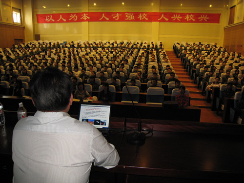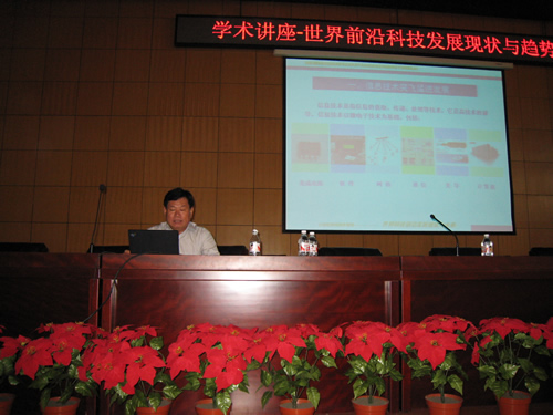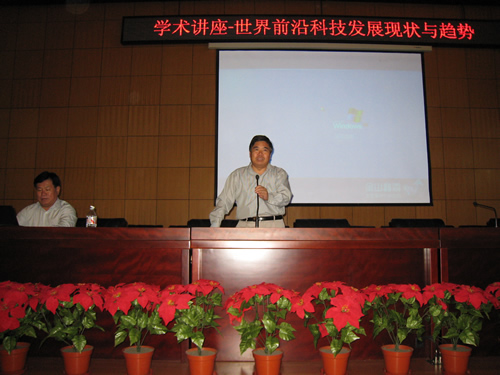 郑志成副厅长主要向同学们介绍了当今世界前沿科技发展的现状、特点及未来的发展趋势。报告配以课件的形式,直观、详细地论述了当今世界在信息技术、生物技术、新材料技术、航天技术、能源开发等高新技术取得的成就和未来的发展态势,并对我国前沿科技的进展和差距进行了深入分析。郑志成副厅长精彩、生动的讲解不时引来台下同学们的阵阵掌声和会心的微笑,新颖、独特而又颇具吸引力的报告内容使学生们大开眼界、受益匪浅。