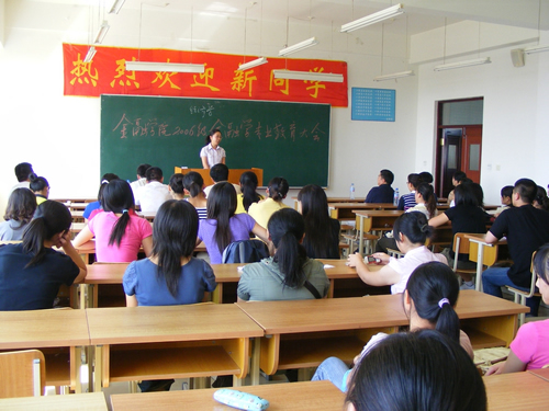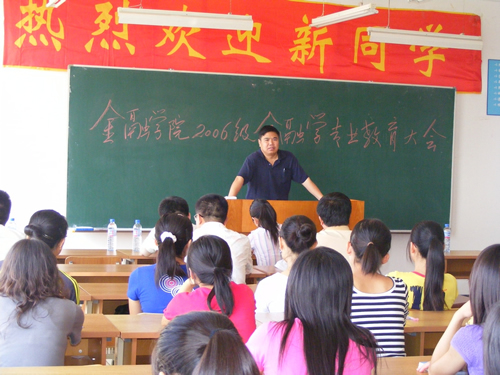 8月23日,金融学院迎来了本学年第一批新生——2006级金融学专业专升本学生,共40人。24日上午8:30,在新区主楼0704教室举行了2006级金融学专业教育大会。出席会议的有金融学院院长李国义、院党总支书记兼副院长钱雨春、教学副院长姚凤阁、科研副院长陈敏、院党总支副书记王春华、金融学教研室主任刘降斌、科研秘书庄岩、行政秘书王东海、教学秘书马骏及全体专升本新生。会议由2006级辅导员石亚平老师主持。