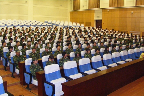 大会开始前,我们照例播放了我校的宣传片《新儒商的摇篮》,以使新生们初步了解我校的发展历史和现状。影片信息量很大,大家都看得很入神。