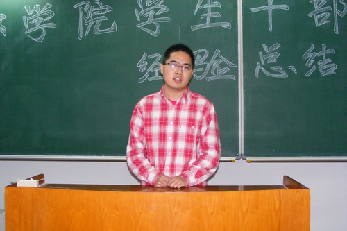 接下来,08级各班班长代表本班学生干部纷纷发言。有的谈工作体会,有的介绍工作经验,还有的对自身工作中的不足进行了剖析。语言质朴,内容实际,在学习、日常生活、校园活动、评奖评优、宿舍卫生、同学关系、新学期的设想等各个方面相互交流了看法,充分体现了学生干部的工作热情、责任感和集体意识。