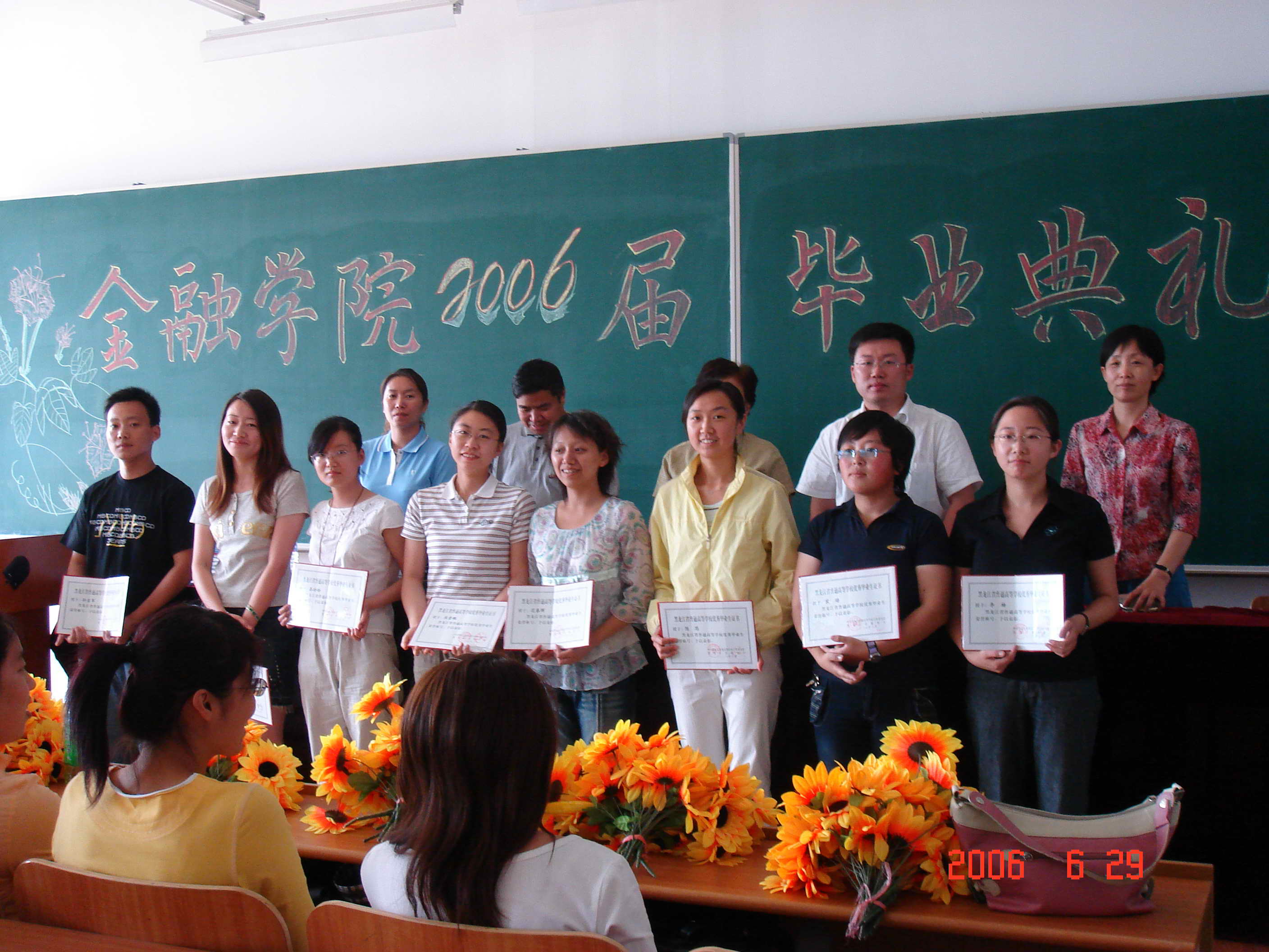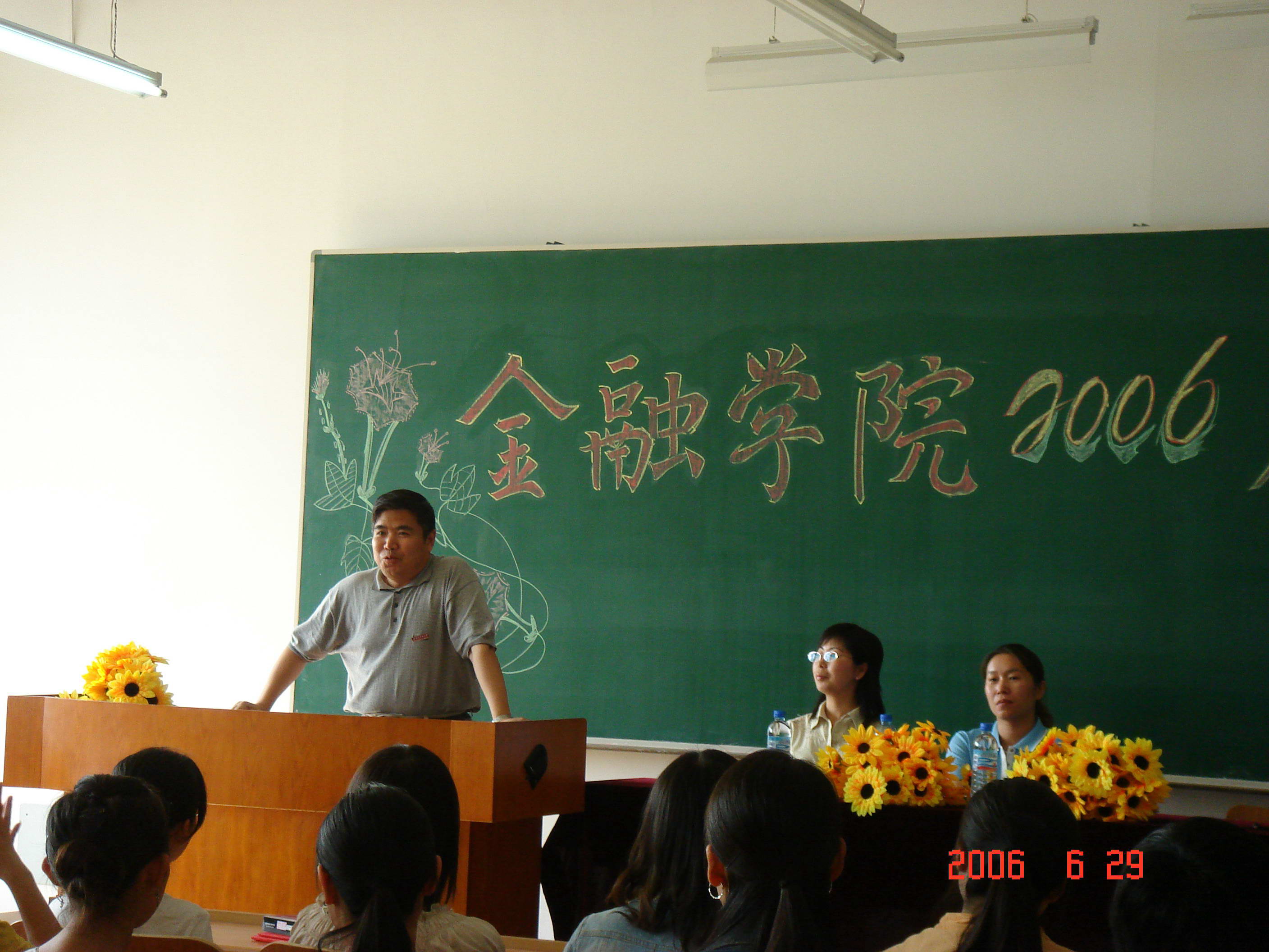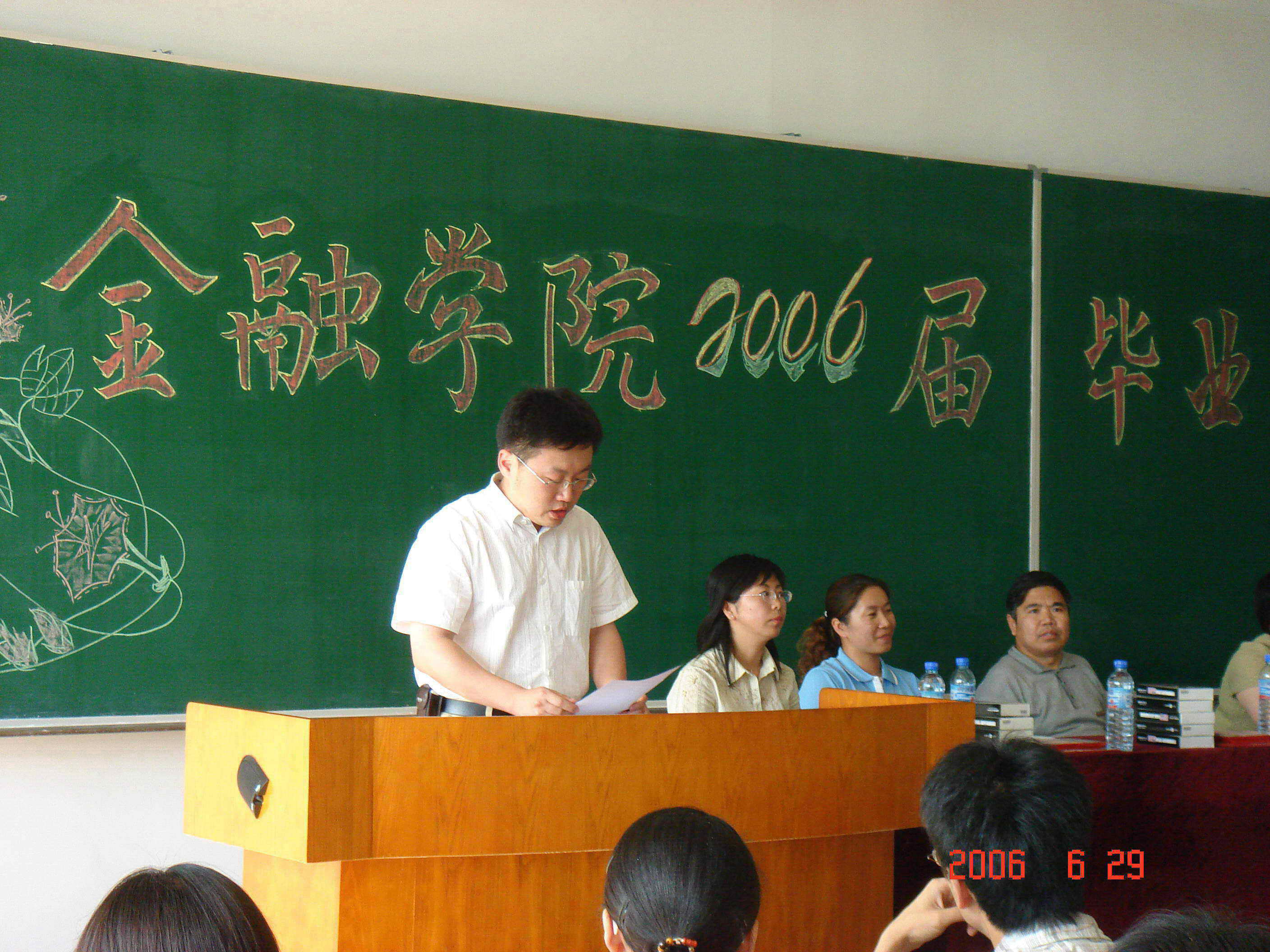 29日下午,金融学院2006届毕业典礼大会在新区4407教室隆重举行。院长李国义、党总支书记孙静波、副院长姚凤阁、副书记钱雨春出席了大会,大会还特邀了校督导室的刘慧敏老师参加,典礼仪式由石亚平老师主持。
