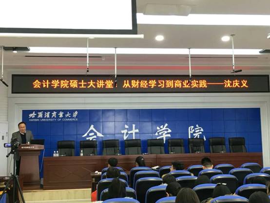 2017年12月21日,会计学院研究生中心举办了“从财经学习到商业实践”讲座,本次讲座在A区一号楼1501致新讲坛举行,会计学院17级全体硕士研究生参加活动。在讲座开始前张林院长对本次讲座主讲嘉宾进行了介绍。本次讲座邀请了中国移动通信集团黑龙江有限公司财务部副总经理、财务核算中心总经理,存量运营中心总经理、机械电子工程学士、经济学硕士、ACCA国际特许公认会计师沈庆义作为主讲嘉宾。