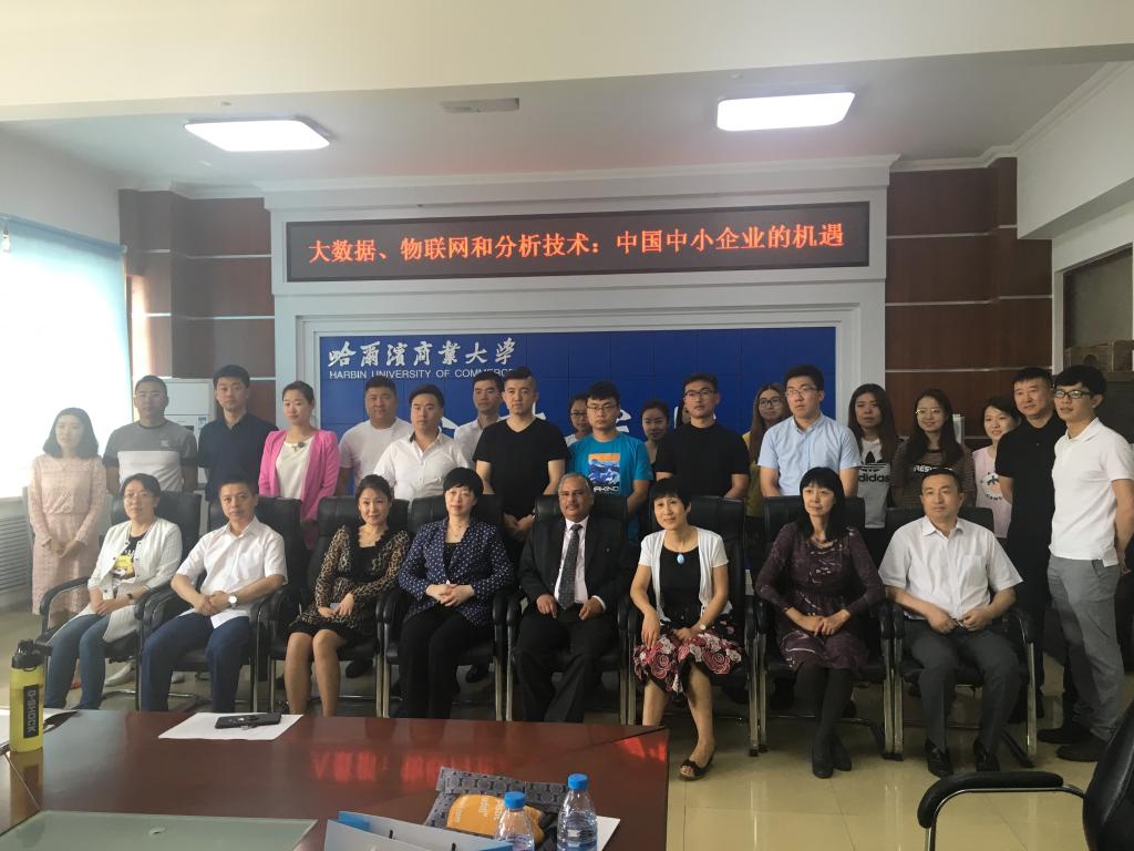 2018年5月31日上午九点,由哈尔滨商业大学会计学院和英国贝特福德大学商学院联合举办的题为《大数据、物联网和分析技术:中国中小企业的机遇》的研讨会在会计学院1405会议室隆重举行。研讨会由副院长张劲松教授主持。参加此次研讨会的嘉宾有来自英国贝特福德大学商学院的Ram Ramanathan教授、段彦青教授,也有专门从事大数据服务的哈尔滨云石科技有限公司的张晋维经理和帆软有限公司的李文博先生,以及来自哈尔滨的13家中小型企业企业家代表。