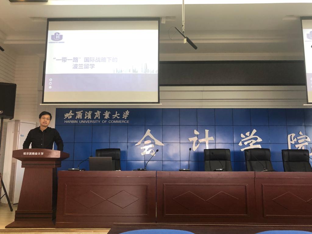 2018年10月24日13:30,会计学院邀请波兰格但斯克大学商科硕士项目招生官纪龙江先生为2015级和2016级学生做了一场商科硕士项目宣讲会。讲座主题是《“一带一路”战略下的波兰留学》,讲座由徐鹿副院长主持。