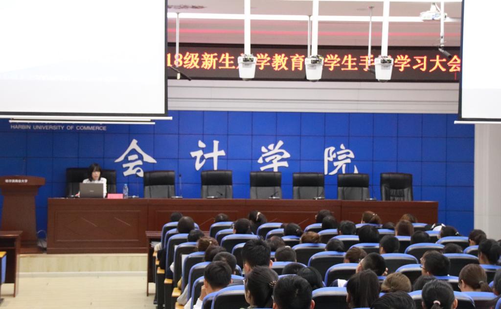 2018年10月24日17:00,2018级新生学生手册学习大会在1501举行。会计学院2018级全体新生积极参加。
