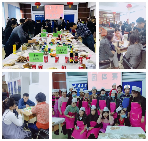 本次新春茶话会设有烹饪大赛、包饺子比赛、棋牌类比赛等活动项目,同时还有各教研室代表献歌。中午十一点整,包饺子比赛在喜庆的氛围中拉开了序幕,各位老师以教研室为单位,三人一组合作包饺子,最终审计教研室拔得头筹,学生工作办公室、专业会计教研室分别获第二、三名。
