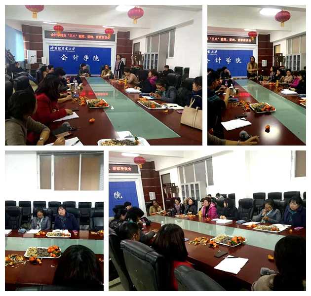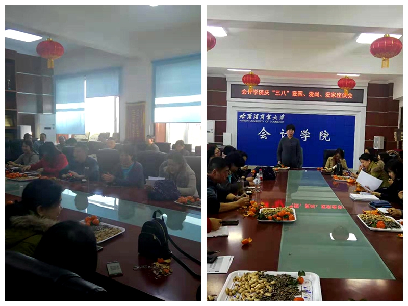 为庆祝第109个“三八”国际劳动妇女节,会计学院于2019年3月6日下午14:00在1405召开了“爱国、爱岗、爱家”座谈会。会计学院全体教工参加了会议。