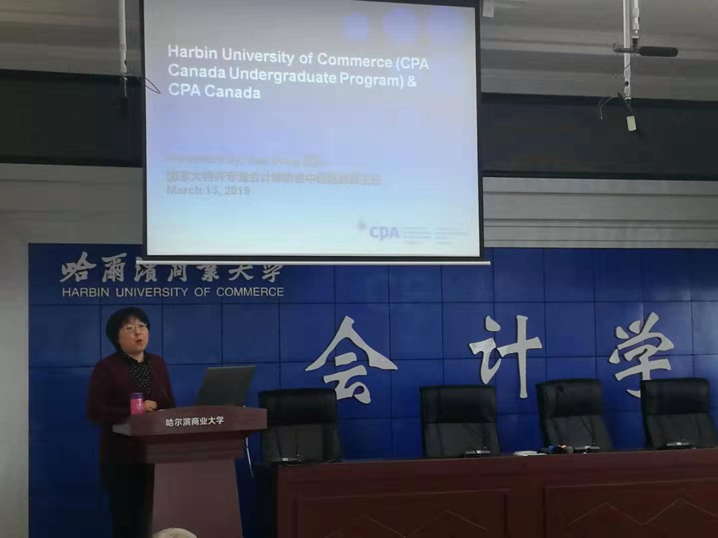 董老师指出,加拿大CPA作为加拿大唯一的专业会计师协会,拥有130多年的历史,在全球范围内拥有超过21万的会员。加拿大CPA在全球范围内具有广泛的认可度和含金量。哈尔滨商业大学会计学院自2004年与加拿大CGA开展合作以来,在经历了一系列的整合之后,仍然保持了良好的合作关系。加拿大CPA专业的毕业生在各自的相关领域都有较为突出的表现。作为加拿大CPA专业的学生无论是在求职、升学、职业能力培养等方面都有较大的竞争优势,一方面来自于学生的自身素养,另一方面加拿大CPA的专业教育培养体系也推动了专业学生的职业发展。