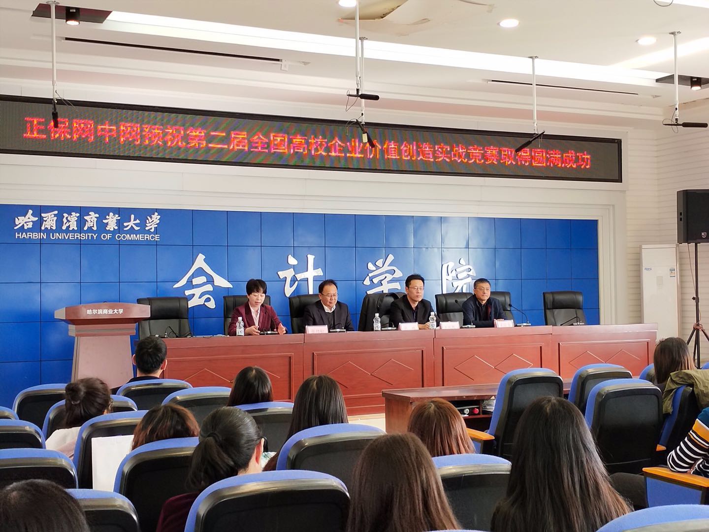 2019年3月24日上午8:30,由黑龙江省教育厅高教处和黑龙江省普通高等学校创新创业教育指导委员会主办的“第二届全国高校EVC企业价值创造实战竞赛黑龙江省赛”在哈尔滨商业大学会计学院学术报告厅如期举行。本次比赛由厦门网中网软件有限公司、沈阳跃客教育科技有限公司、中华会计网校提供技术支持。