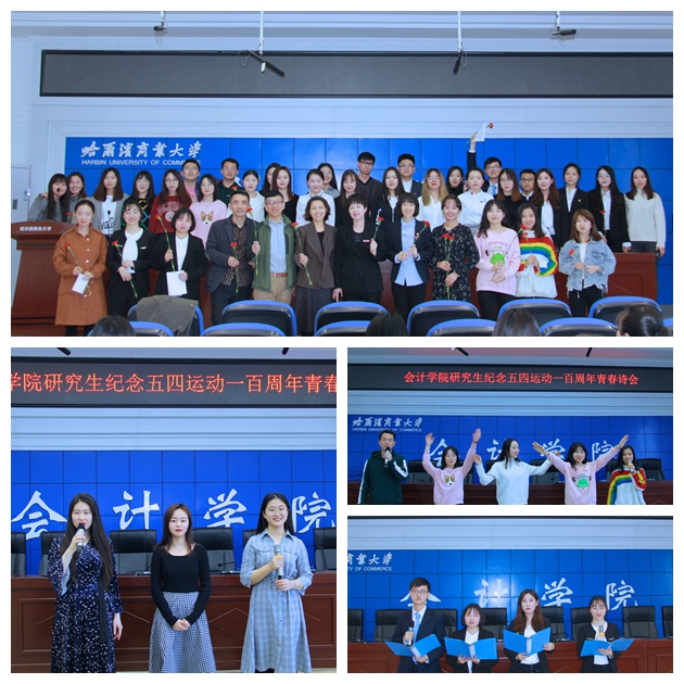 为纪念“五四运动”100周年,进一步弘扬“爱国、进步、民主、科学”的五四精神,4月24日16时,哈尔滨商业大学会计学院研究生会在1501隆重主办以“青春有梦想,建功新时代”为主题的青春诗会活动。2018级会计学院190名硕士研究生与老师们欢聚一堂,共赏文化盛宴。