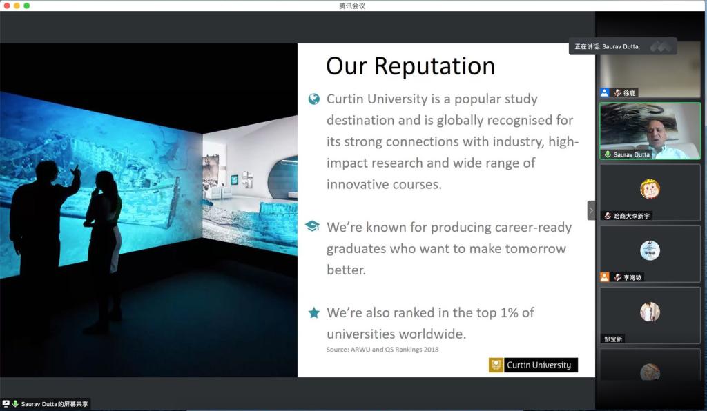 由于疫情原因,此次项目的宣讲会在线上举行,我校与科廷大学的合作已经进行了3年,“1+1”项目也是两校之间一系列合作中的重要部分,也为我校会计学院的国际化发展提供了平台和方向。