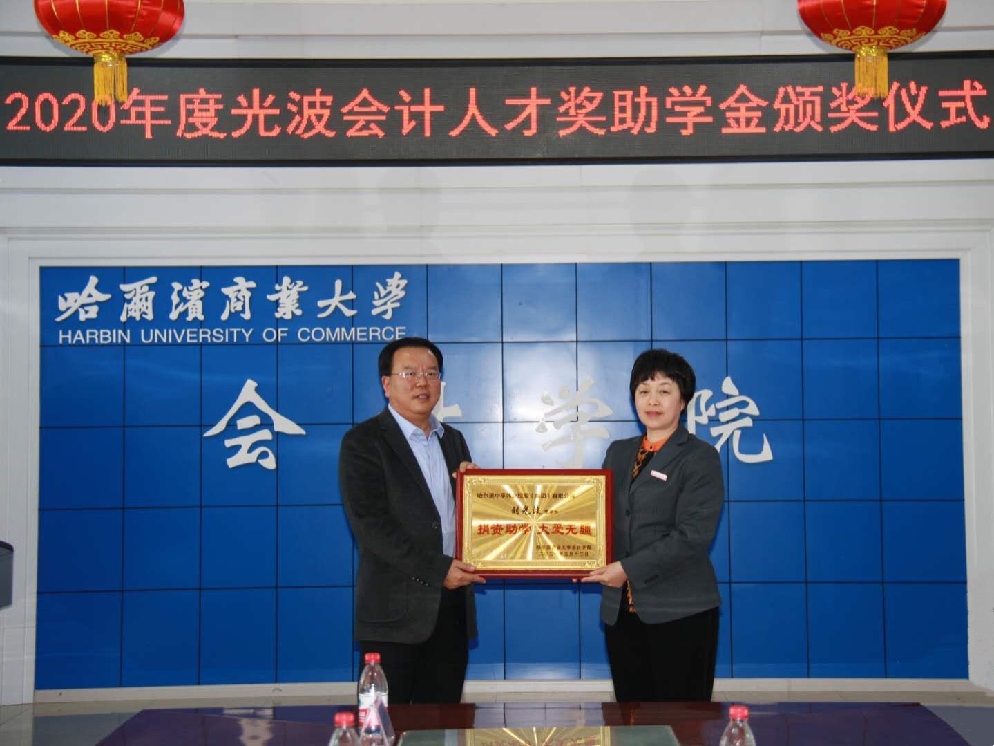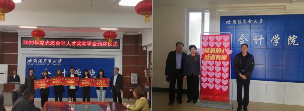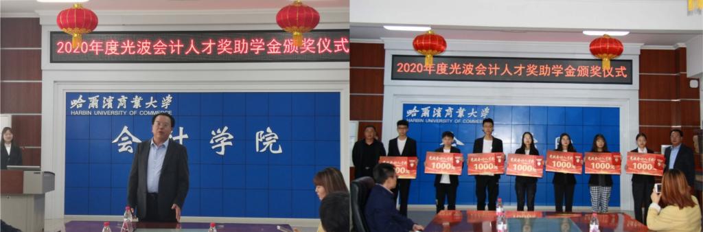 5月12日下午,会计学院举办2020年光波会计人才奖助学金颁奖仪式。哈尔滨中孚伟业控股(集团)有限公司董事长刘光波和人力资源部部长穆晨出席仪式。会计学院党委书记张春明、院长张劲松、党委副书记王博、副院长徐鹿、副院长梁运吉、副院长姜雪松,各年级辅导员以及全体获奖学生参加颁奖仪式。