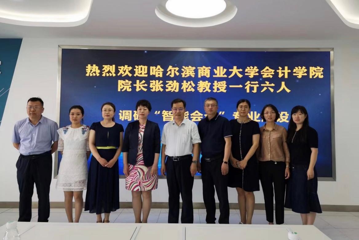 我校会计学院教师代表与山东财经大学会计学院就智能会计(方向)的建设与发展进行学习和交流。山东财经大学会计学院院长王爱国教授、会计信息化系主任牛艳芳教授出席调研会议。
