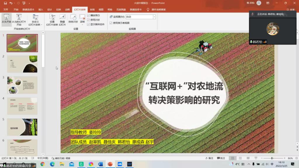 3月25日,会计学院按照学校疫情防控要求,通过线上开展2021年大创项目中期检查答辩工作。会计学院党委书记张春明、副院长梁运吉、副院长姜雪松以及教师姜玲玲、孟丽荣、王朋吾、陈旭、奚迪组成专家评审组。